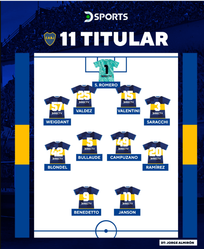 El DT Jorge Almirón mandará el siguiente equipo inicialista para enfrentar a River Plate en horas del mediodía: Romero; Weigandt, Valdez, Valentini, Sarachi; Blondel, Bullaude, Campuzano, Ramírez; Benedetto y Janson. Claramente estamos frente a un cuadro con ciertas variantes respecto al que viene compitiendo normalmente en la Copa Libertadores de América, por lo que quizá desde dicha perspectiva se entiende la suplencia de Luis Advíncula.