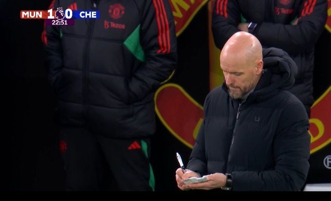Sin embargo, este método de dirigir también lo utilicen los técnicos de las mejores ligas del mundo. Uno de los claros ejemplos, fue el del técnico del Manchester United, Erik Ten Hag. Así es, en la victoria de los ‘Diablos Rojos’ sobre el Chelsea en la Premier League, se apreció como el técnico neerlandés realizó apuntes, con respecto al rendimiento de sus jugadores.