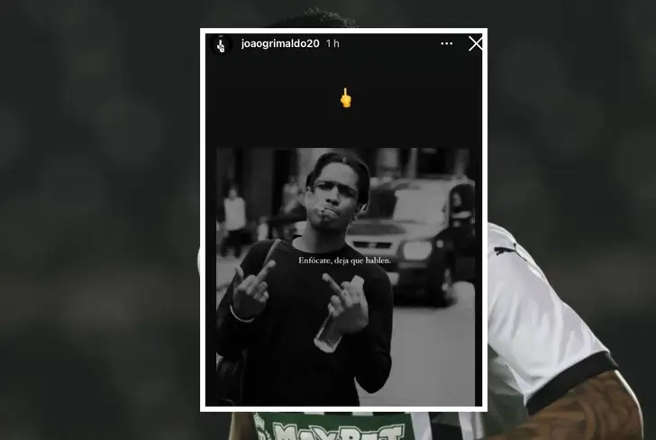 Utilizando su cuenta de Instagram, Joao Grimaldo publicó una imagen acompañada de la frase "Enfócate, deja que hablen". La fotografía muestra el rostro de una persona con el dedo medio levantado, un gesto que ha sido interpretado como una respuesta a las críticas y comentarios negativos que ha recibido en las últimas horas.