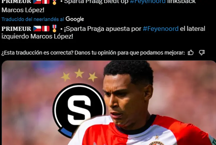 "Marcos López parece haber disputado su último partido con el Feyenoord. Desde República Checa, el Sparta Praga confirmó esta semana los servicios del peruano de 24 años. Ya hay oferta en Róterdam para liberar al lateral izquierdo y el posible traspaso ya está en una fase final. A la espera de su transferencia (eventualmente permanente), López no parece estar en la selección del Feyenoord para el partido del domingo, que tendrá lugar a las 14:30 horas en el partido fuera de casa ante el PEC Zwolle. Los de Rotterdam saben que el propio López ya ha llegado a un acuerdo de principio con el ex club del entrenador Brian Priske y Dávid Hancko", fue lo que se pudo conocer por el medio 1908.