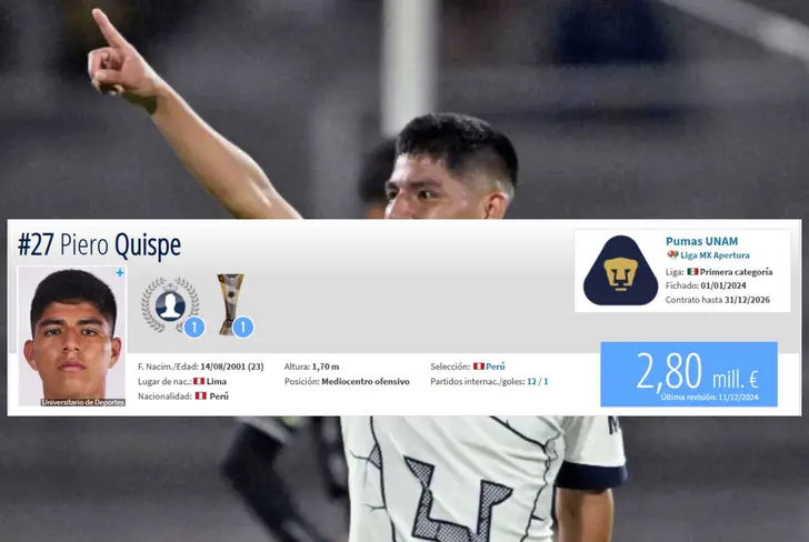 El futuro de Piero Quispe en Pumas UNAM ha cobrado un nuevo rumbo con la aparición de rumores que vinculan al volante peruano con el Fluminense de Brasil. Según reportes de la prensa especializada, el club carioca estaría dispuesto a desembolsar una cifra cercana a los 2,8 millones de euros, según su valoración actual en Transfermarkt, para hacerse con los servicios del talentoso mediocampista.