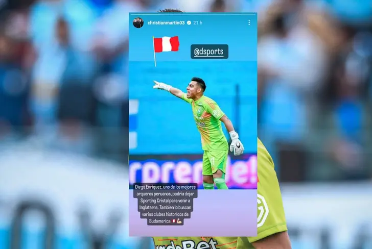 El joven arquero peruano Diego Enríquez, quien tranquilamente podría ser el reemplazante de Pedro Gallese en la Bicolor, se ha convertido en una de las grandes promesas del fútbol nacional. Sus destacadas actuaciones con Sporting Cristal han llamado la atención de diversos clubes a nivel internacional, siendo Inglaterra uno de los destinos más probables para su futuro, de acuerdo a una reciente información del reconocido periodista argentino Christian Martin a traves de sus redes sociales.