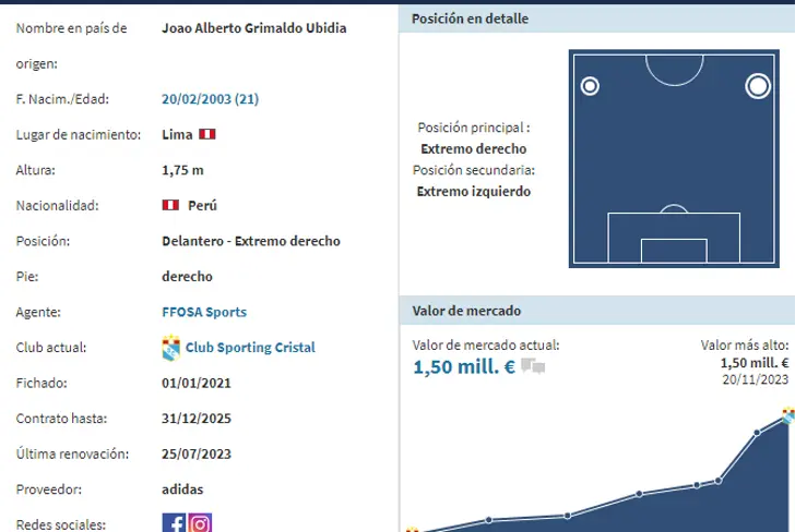 Y es que, según Transfermarkt el extremo nacional tiene una cotización de 1,5 millones de euros, por lo que se esperaría que Sporting Cristal llegue a un acuerdo por una cifra superior a esta, sobre todo teniendo en cuenta que es un joven jugador y que podría llegar a ser vendido por mucho más dinero en un futuro. Apuesta en Betsson a los partidos de las mejores ligas del mundo y recibe un bono de bienvenida de 50 soles