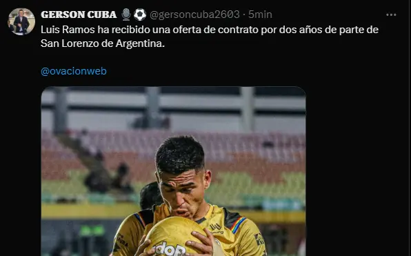 Se trata de Luis Ramos, quien posiblemente pocos conozcan, ya que ha estado jugando en el equipo Cusco FC, que no es uno de los más populares de la Liga 1. A pesar de no haber anotado muchos goles, es considerado un delantero interesante que podría lograr grandes cosas. Por esta razón, se ha sabido a través de Gerson Cuba que ha recibido una oferta de San Lorenzo en Argentina. "Luis Ramos ha recibido una oferta de contrato por dos años por parte de San Lorenzo de Argentina", anunció en sus redes sociales.