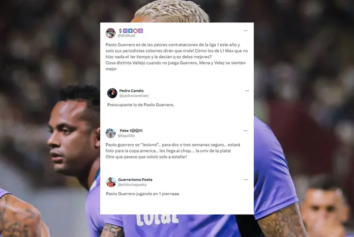 "Paolo Guerrero es de las peores contrataciones de la liga 1 este año y solo sus periodistas sobones dirán que rinde! Cómo los de L1 Max que no hizo nada el 1er tiempo y le decían q es delos mejores? Cosa distinta Vallejo cuando no juega Guerrero, Mena y Velez se sienten mejor", "Paolo guerrero se “lesionó”… para dos o tres semanas seguro… estará listo para la copa america… les llega al chop.… la univ de la plata! Otro que parece que volvió solo a estafar!", "Preocupante lo de Paolo Guerrero", "Paolo Guerrero jugando en 1 piernaaa", fueron comentarios de los hinchas tras e juego de Paolo Guerrero ante Sporting Cristal.