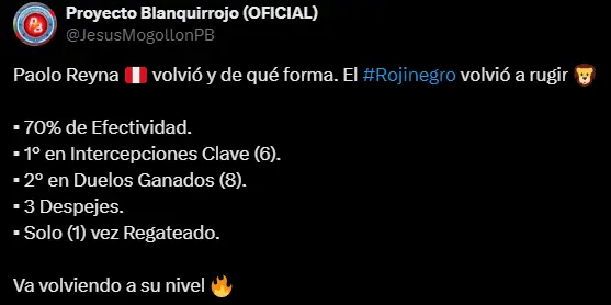 Con un tremendo rendimiento dentro del terreno de juego, logrando ser el número uno en intercepciones clave, el segundo en duelos ganados y tener un 70% de efectividad, sin duda fue clave en el cuadro de Melgar para vencer a un Sporting Cristal que no se esperaba tener que enfrentarlo de esta forma.