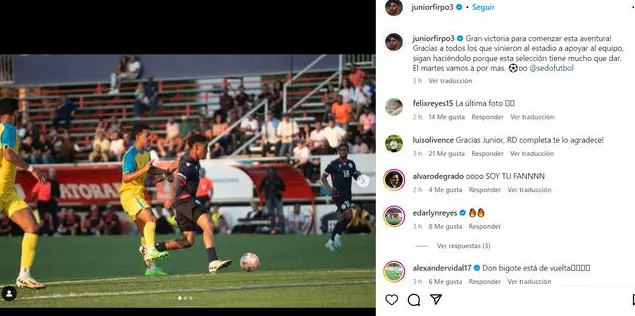 Eso sí, la gran figura de República Dominicana, Junior Firpo no dejó pasar la oportunidad de mandar un pequeño mensaje para la Selección Peruana en sus redes sociales. "¡Gran victoria para comenzar esta aventura! Gracias a todos los que vinieron al estadio a apoyar al equipo, sigan haciéndolo porque esta selección tiene mucho que dar. El martes vamos a por mas ", se lee en el pie de foto.