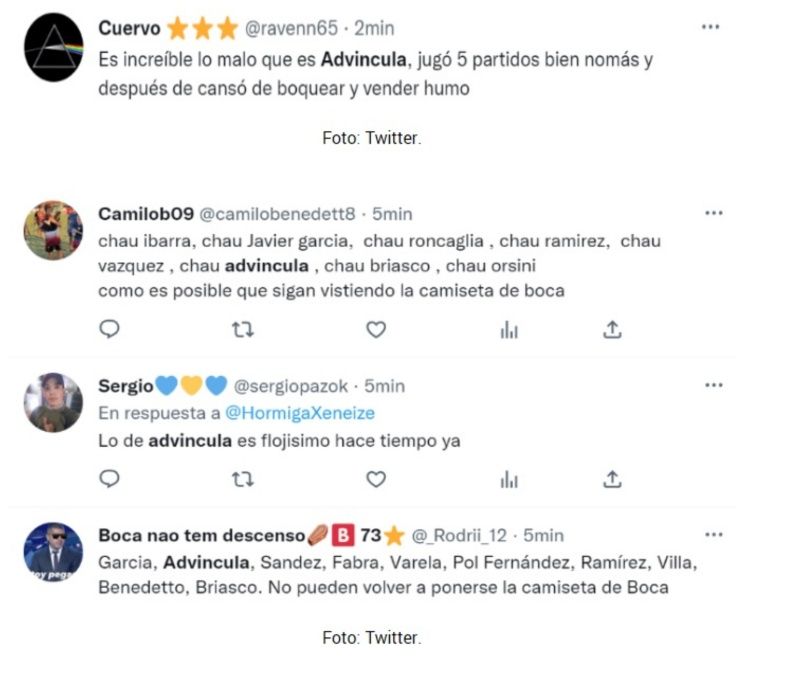 "No puedo ver una vez mas a Advíncula con nuestra camiseta. Lo odio. Lo detesto", fue uno de los comentarios más desacerbados que recibió ‘Bolt’ en las redes sociales. No obstante, un pequeño grupo de la afición del elenco boquense le dio su respaldo. Aún así, para Hugo Ibarra el peruano continúa siendo una pieza importante dentro de su equipo, por lo que una salida del club es inviable.