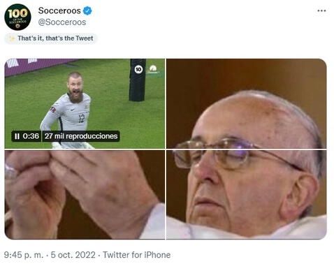 Con respecto al Tweet que terminó colocando al cuenta de Australia, vemos al papa dando una hostia, pero en lugar de esta última, sale Andrew Redmayne sonriendo, como cuando le paró el penal a Alex Valera, quien en ese momento decidió asumir la responsabilidad para poder continuar la serie, pero lastimosamente no pudo evitar perder el penal y con ello la eliminación de la Selección Peruana, algo que sigue doliendo a varios hinchas nacionales, los cuales esperaban tener a la Bicolor nuevamente en una cita mundialista, pero por lo pronto deberán esperar 4 años más para poder verla, si es que se consigue ir a Norteamérica.