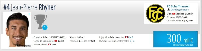 El ‘Patrón’ fue convocado ante algunas críticas que recibió en redes sociales por parte de los hinchas peruanos. De esta manera, el ‘Cabezón’ no convocó finalmente a un jugador que es titular indiscutible en Europa y que cuesta 300 mil euros. Nos referimos a Jean Pierre Rhyner, quien es titular indiscutible en el FC Schaffhausen de la Segunda División Suiza.