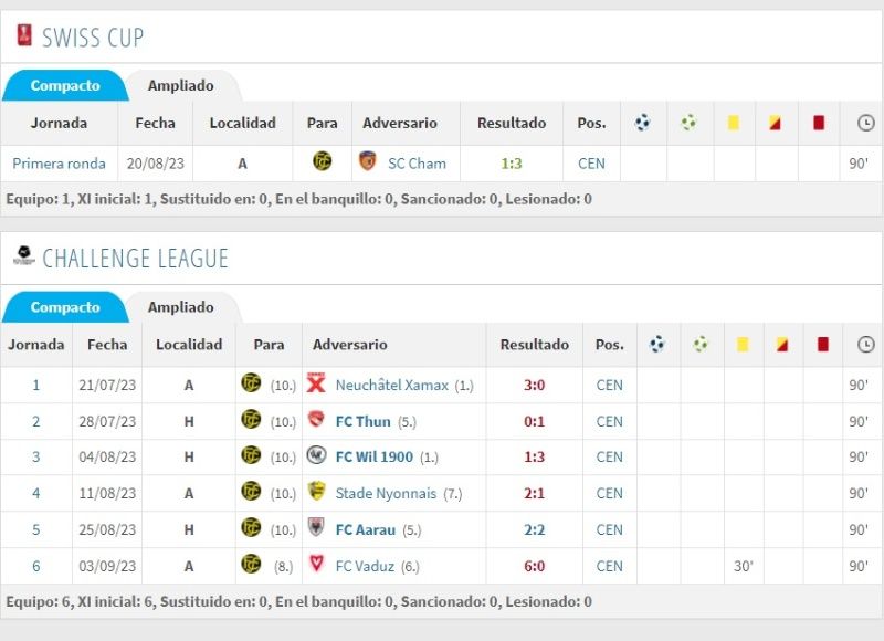 Esta temporada 2023 - 2024, Jean Pierre Rhyner ha jugado 7 compromisos, 1 por la Copa de Suiza y 6 partidos de la Segunda División. Veremos si a la postre logra el ascenso a la Primera División, y de esta manera se incrementan quizás sus posibilidades de ser tenido en cuenta por el comando técnico de la Blanquirroja.