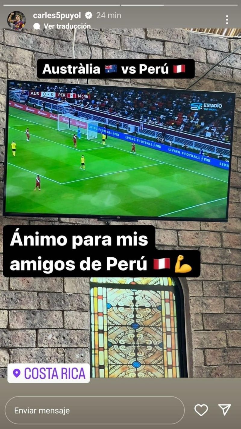 Una de ellas es Carles Puyol, que mostró su aliento peruano por medio de redes sociales, indicando que estaría con el equipo en este complicado partido por un cupo al mundial.
