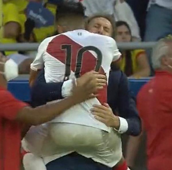Se trata del abrazo de Christian Cueva con Ricardo Gareca, 'Aladino' fue el artífice de la jugada del gol, pues asistió a Flores con un pase al espacio desde la mitad de la cancha. Al anotar el tanto, el volante del Al - Fateh no lo pensó dos veces y abrazó con fuerza Gareca.
