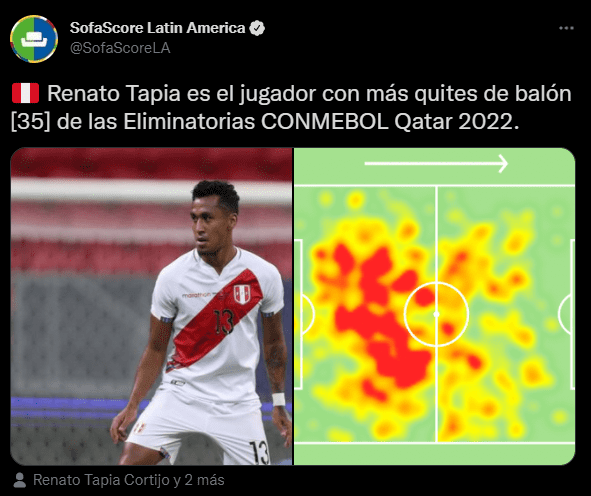 El portal de estadísticas SofaScore dio a conocer quien había sido el jugador a lo largo de las eliminatorias que más balones robó para su equipo, lo cual ha muchos agarró por sorpresa que este futbolista sea peruano, ya que no se esperaba que estuviera por encima de figuras como Casemiro, Paredes, entre otros futbolistas de corte defensivo.