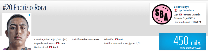El delantero chalaco de 21 años tiene una cotización internacional en el mercado monetario de 450 mil euros, lo que en soles daría un aproximado arriba de los 1,6 millones, según el portal especializado ´Transfermarkt´. Estamos ante un jugador que viene dando luces de una gran calidad y categoría en el torneo local y que a la vez dicha frescura podría servir en demasía para las planificaciones que tiene Juan Reynoso para los próximos partidos ante Chile en Santiago y Argentina en Lima.