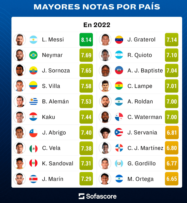 Según se pudo conocer mediante Sofascore, quien se encarga de dar muchas estadísticas según sus sistema, dio a conocer los mejores jugadores de cada país de Latinoamérica, siendo justamente Kevin Sandoval el peruano que tuvo el mejor rendimiento a lo largo del 2022, pese a eso en la Selección Peruana no existe, lo cual es realmente asombroso, pues está a la altura del mismo Messi o Neymar.