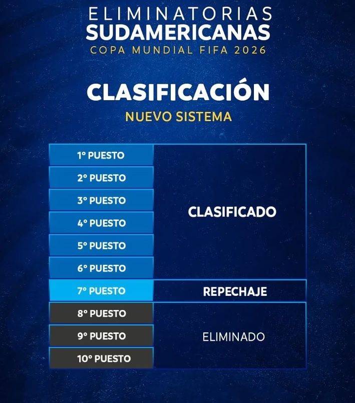 A 13 días de inicio de las Clasificatorias, a través de Conmebol publicó el nuevo sistema en el cual las selecciones accederán a un cupo al máximo torneo internacional. Explicó que las primeras seis selecciones accederán al Mundial de manera directa, el que esté en la séptima posición irá al Repechaje, los puestos 8, 9 y 10 quedarán eliminados de la competencia. Esta nueva regla será implementada desde esta nueva Eliminatoria y fue la FIFA quien dio la primicia. Una grata noticia ya que con más cupos, las posibilidades de clasificación crecen para la bicolor.