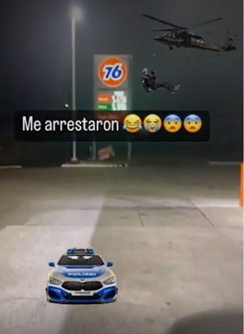 Mientras estaba detenido con su auto, aprovechó para subir el video en el que indicó “me arrestaron”, acompañado por unos singulares emojis. Si bien se desconoce con exactitud quién lo “arrestó”, lo cierto es que llamó tremendamente la atención de todos, más aún al verse junto a unos amigos en el ‘Public Market Center’ donde aparece sonriente.