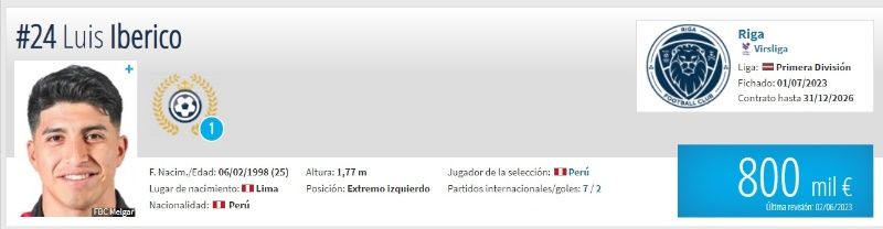 Luis Iberico está cotizado en el mercado internacional en 800 mil euros, según Transfermarkt. Esta cifra vendría a ser en soles un aproximado de S/3,2 millones. Lo más probables es que por antecedentes, Juan Reynoso no llame al actual delantero del Riga FC. Recordemos que para la posición de extremo se encuentran jugadores como Joao Grimaldo, Jhamir D' Arrigo, Andy Polo, entre otros elementos. La lista de convocados del ‘Cabezón’ la dará a conocer el día lunes 2 de octubre.