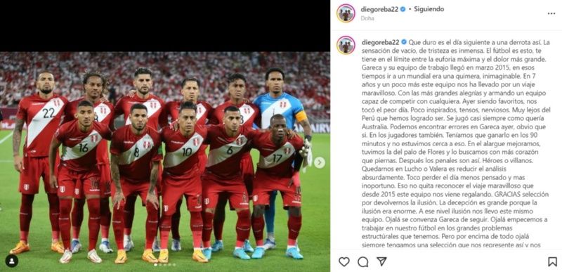 De esta manera el periodista de Movistar Deportes hizo un post en su cuenta de Instagram aún acongojado por la derrota a manos de Australia, siendo sumamente analítico y ya con un poco de cabeza fría para asimilar el resultado.