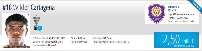 Cabe precisar que tanto Abram (Atlanta United) como Cartagena (Orlando City) valen en el mercado internacional 3 millones y 2,50 millones de euros, respectivamente. Sumado estas dos cifras, sale un total de 5,5 millones de euros, lo que al cambio en soles vendría a ser aproximadamente un poco más de S/22 millones.
