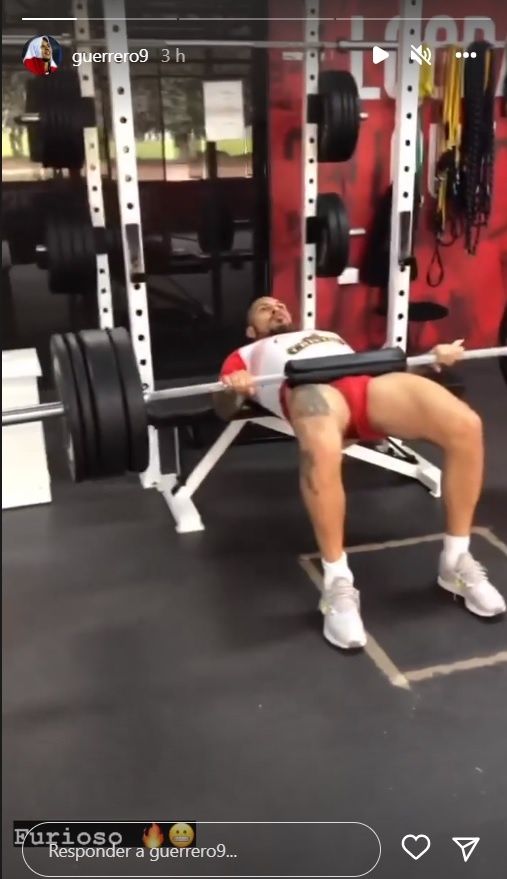 En una historia en Instagram que subió el ex Inter de Porto Alegre, se lo ve alzando pesas con las piernas. "Furioso", fue lo que puso Paolo Guerrero en Instagram, generando el pulgar arriba de sus fieles seguidores.