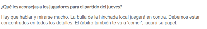 “Hay que hablar y mirarse mucho. La bulla de la hinchada local jugará en contra. Debemos estar concentrados en todos los detalles. El árbitro también te va a comer, jugará su papel”; comentó el experimentado zaguero nacional en nota con ´Líbero´ en una especie de premonición de lo que podría ocurrir en el debut del próximo jueves en el Estadio Antonio Aranda.
