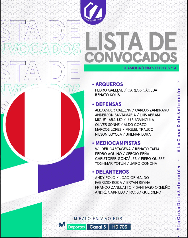 Luego de tantas idas y vueltas respecto a los jugadores que merecían o no ser tomados en cuenta en la Selección Peruana de cara a la próxima fecha doble de las Eliminatorias Sudamericanas, hoy por fin hemos podido conocer de manera oficial a los nombres que viajarán en las siguientes horas a la ciudad de Santiago para enfrentar a Chile y luego regresar a la capital para recibir a la campeona del mundo, Argentina; así que de esta manera no hay sorpresas ni rumores por parte de los hinchas ni de la prensa deportiva.