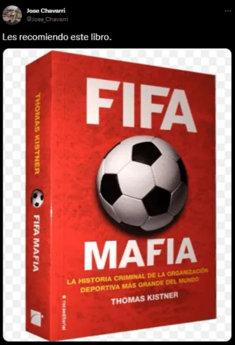 Es de esta manera como, en un mensaje con clara alusión a quienes son parte de la FIFA actualmente, disparó en sus redes sociales. El comentarista de 'Movistar Deportes' pegó de forma sutil, con esta oración: "Les recomiendo este libro". Viéndose dentro de su propuesta uno de los artículos bibliográficos más potentes. El cual expone a los directivos principales de esta comentada organización.