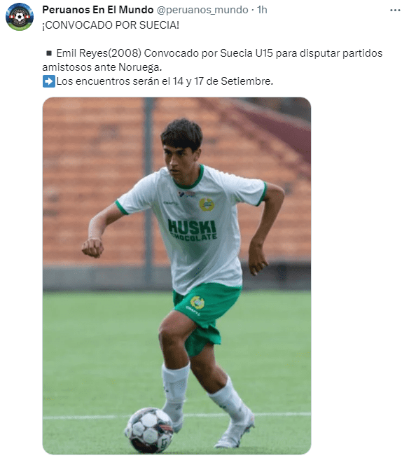 “¡CONVOCADO POR SUECIA! Emil Reyes(2008) Convocado por Suecia U15 para disputar partidos amistosos ante Noruega. Los encuentros serán el 14 y 17 de Setiembre", publicó Peruanos en el Mundo, con lo cual deja en claro que acá la FPF debe de mejorar no solo en comunicarse, sino también en poder conseguir una mayor organización que ayude a que se crea en un proyecto real.
