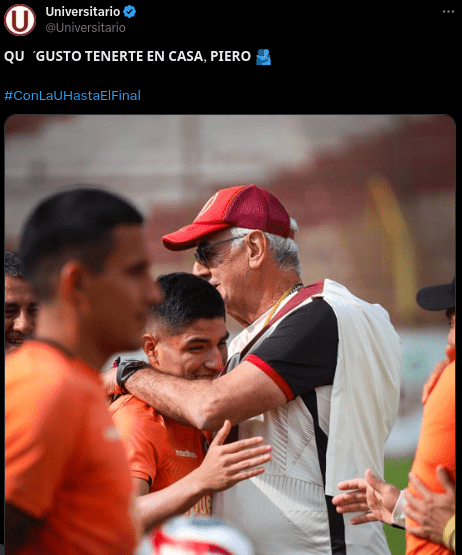 Por su lado, Jorge Fossati demostró lo mucho que extrañó a Piero Quispe y la gran consideración que le tiene en Universitario de Deportes, por ese motivo es que al llegar a los entrenamientos no dudó en darle un fuerte abrazo, casi como un padre lo hace con su hijo, una gran muestra de cariño en un momento importante, pues Juan Reynoso lo dejó de lado y no le dio ninguna chance para que pueda llegar al menos a poder estar un rato en el terreno de juego con la Selección Peruana y ver que es capaz de hacer.