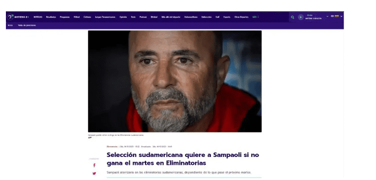 Frente a esta situación es que, de acuerdo a información de distintos medios internacionales, hemos podido conocer que ya hay varios candidatos. Según ´Antena 2´, reconocido portal colombiano, asegura con total firmeza el nombre de un DT próximo para llegar a Videna. “Sampaoli sería una de las opciones la Federación de ese país, pese a que sus resultados como director técnico no han sido los mejores, hablando de las dos últimas experiencias que ha tenido”; mencionan en una información que está dando la hora en el ámbito local. Apuesta en Betsson con una SUPERCUOTA 20.00 por el triunfo de PERÚ ante Argentina, en el 1x2 pre-match con un máximo de S/20.