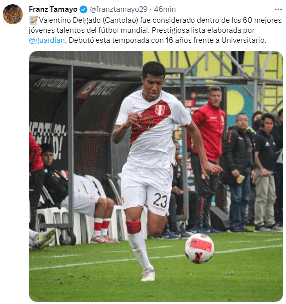 Este es el caso de una promesa que no es solo del Perú, sino que a nivel mundial, estamos hablando de Valentino Delgado, futbolistas de Deportivo Cantolao, que debido al medio The Guardian, que lo ve como una de los mejores prospectos no del Perú, menos de Sudamérica, sino de todo el Mundo, con lo cual se espera bastante que pueda llegar a representar a la Selección Peruana muy pronto, pudo hacerlo en el Mundial Sub 17 que se iba a realizar en el Perú, pero al final nuevamente se perdió la organización de este certamen.