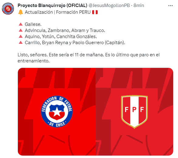 En este caso el conjunto chileno está pasando por un momento complicado, no están sus máximas figuras con un buen presente, no están marcando diferencia y posiblemente se vea como la peor Chile de los últimos años, sobre todo teniendo en cuenta que tuvo equipos de gran nivel, con un Alexis Sánchez o Arturo Vidal que lograban ser los amos y señores del equipo, muchas veces dominando tanto a la Selección Peruana que lo dejaron muy mal, pero hoy la historia es diferente.