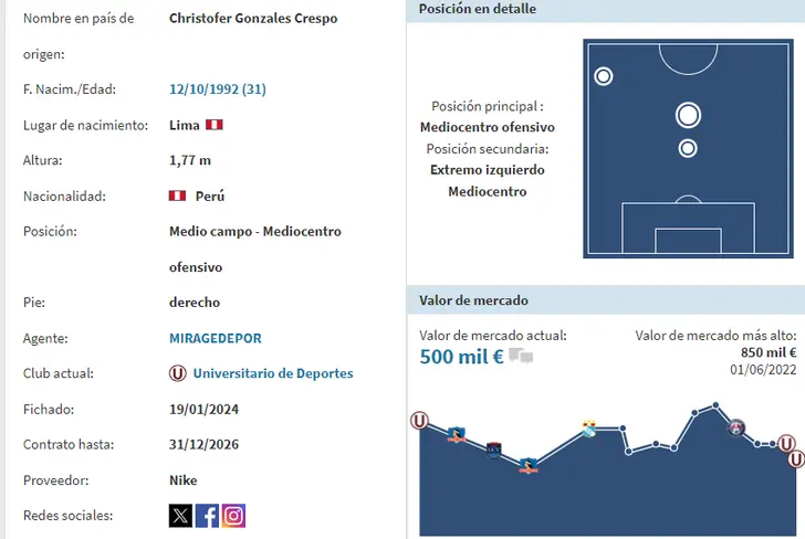 El volante nacional de 31 años de edad tiene una cotización monetaria de 500 mil euros, lo que en soles daría un promedio cercano a los 2 millones, de acuerdo al portal especializado ´Transfermarkt´. Nadie dice que esté totalmente borrado de los planes a futuro de la Selección Peruana, pero para ello debería ponerse las pilas en el menor tiempo posible y así desterrar todos aquellos comentarios de que su mejor momento en Videna ya pasó, de lo contrario seguirá siendo un jugador más del montón que ni siquiera en la Liga 1 es capaz de destacar.