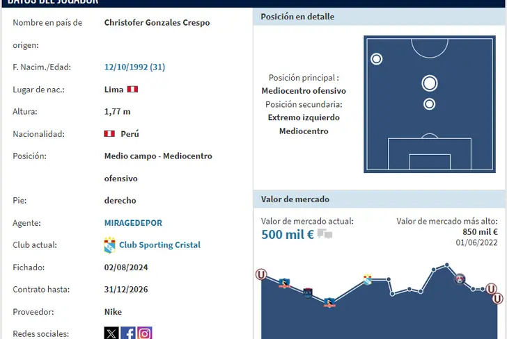 Según el portal especializado 'Transfermarkt', podemos apreciar que Christofer Gonzáles tiene una cotización internacional de 500 mil euros, lo que en soles daría un promedio cercano a los 2 millones. Teniendo en cuenta que el profesor Jorge Fossati ha mencionado que está pendiente de distintos jugadores de la Liga 1 que se puedan sumar a la Selección Peruana de cara a la nueva convocatoria pensando en el mes de septiembre, habría que estar al pendiente si es que finalmente 'Canchita' se mete a la lista que empiece a armar el comando técnico en Videna.