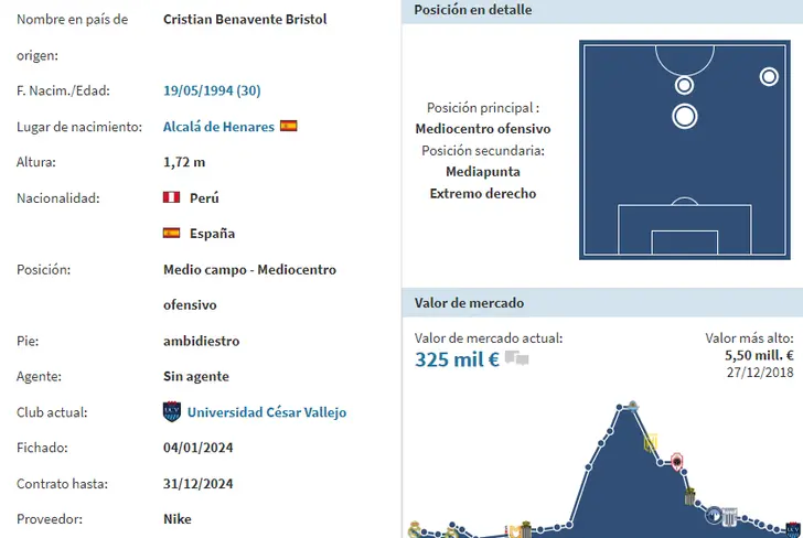 El volante nacional tiene un precio monetario en el mercado de 325 mil euros, lo que en soles daría un promedio aproximado a los 1,3 millones, de acuerdo al portal especializado ´Transfermarkt´. De esta manera queda totalmente comprobado que incluso en dicho aspecto ha decaído totalmente cuando en su momento valía millones jugando en el fútbol europeo. Veremos si es que por el bien de su carrera logra recuperar al menos un poco del nivel que mostraba en años anteriores.