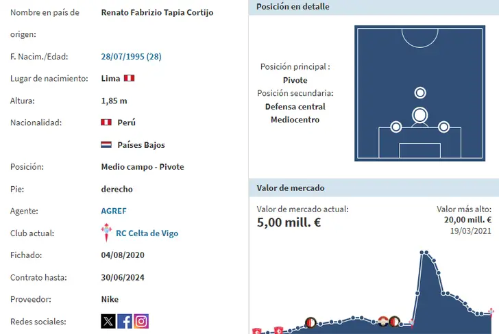 Renato Tapia tiene un precio monetario en el mercado de 5 millones de euros, lo que en soles daría un aproximado cercano a los 20 millones, según el portal especializado ´Transfermarkt´. Queda demostrado que con su presencia en el 11 titular la Selección Peruana gana jerarquía, categoría y sobre todo liderazgo, por lo que pensando en la Copa América es uno de los fijos que de ahora en adelante no puede ni resfriarse ya que lo necesitamos al 100% de sus capacidades.