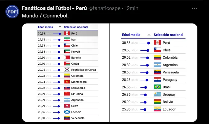 La Selección Peruana, bajo la dirección técnica de Jorge Fossati, se encuentra en un momento crítico. A los malos resultados obtenidos en los últimos encuentros, se suma ahora un dato preocupante: según un reciente informe del CIES Football, Perú es la selección nacional con el promedio de edad más alto del mundo, alcanzando los 30.38 años. Esta situación plantea interrogantes sobre el futuro de la Bicolor y las decisiones que se deben tomar para revertir esta tendencia.