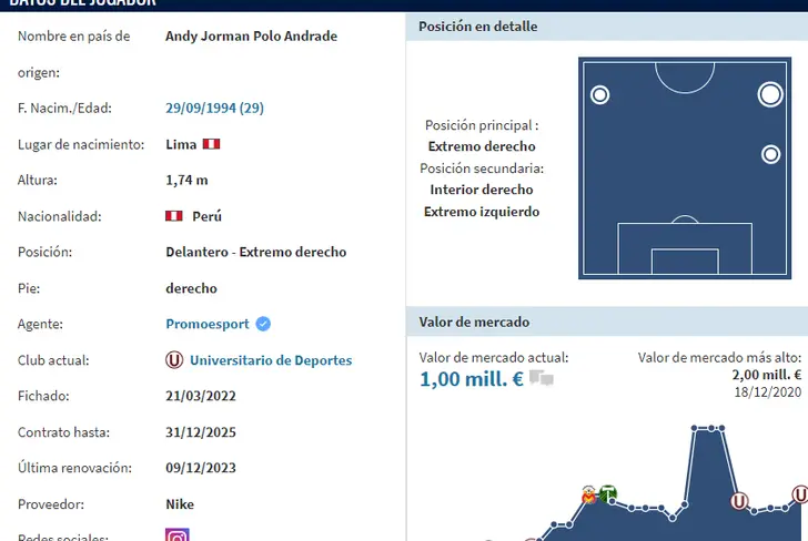 El carrilero nacional de 29 años tiene una cotización monetaria de 1 millón de euros, lo que en soles daría un promedio cercano a los 4 millones, de acuerdo al portal especializado ´Transfermarkt´. Es muy probable que pese al bajo rendimiento que ha demostrado en esta Copa América veamos a Andy Polo como uno de los jugadores fijos dentro de la Era Fossati, más aún cuando el DT nacional seguirá apostando por el sistema 3-5-2 y ve en este jugador a uno de los que mejor rinde por la banda derecha.