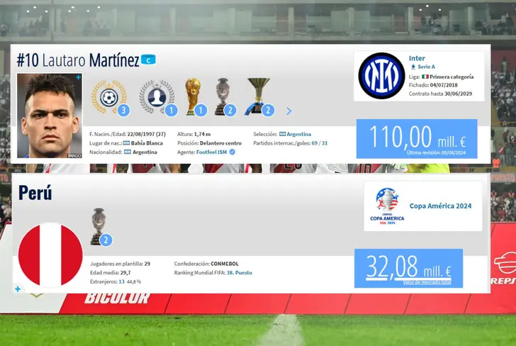La diferencia de valor entre Lautaro Martínez y la selección peruana se explica por varios factores: