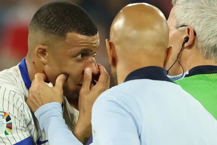 “Kylian Mbappé sufrió una fractura de nariz durante la segunda parte del partido entre Austria y Francia este lunes en Düsseldorf. El capitán de la Selección Francesa fue atendido en primer lugar por el personal médico y el doctor Franck Le Gall que diagnosticó una fractura de nariz. Diagnóstico confirmado durante los exámenes radiológicos en el hospital de Düsseldorf. Se fabricará una mascarilla para que el número 10 de la Selección Francesa pueda plantearse reanudar la competición tras un periodo dedicado al tratamiento”; informó de manera detallada la Federación Francesa de Futbol.