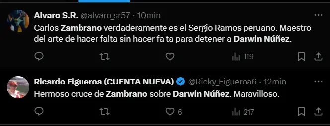 En el intenso duelo entre Perú y Uruguay, uno de los duelos individuales más esperados era el que protagonizarían Carlos Zambrano y Darwin Núñez. El defensor peruano, conocido por su férrea marca y su carácter combativo, se enfrentó al delantero uruguayo, una de las grandes promesas del fútbol mundial. Y en este choque de estilos, el experimentado Zambrano demostró una vez más su jerarquía, por lo cual fue apodado como el 'Sergio Ramos peruano'.