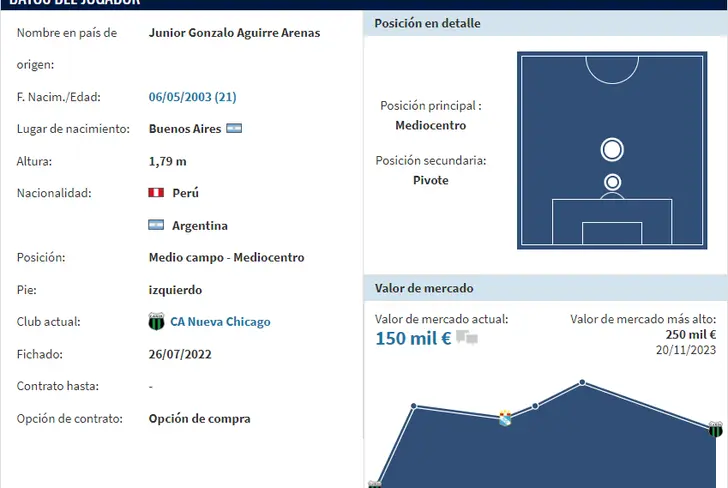 El mediocampista argentino con nacionalidad peruana tiene una cotización internacional de 150 mil euros, lo que en soles daría un promedio de 600 mil euros, de acuerdo al portal especializado ´Transfermarkt´. Claramente no tiene un precio tan alto que digamos y eso se debe a la casi nula actividad que ha tenido en este año con Nueva Chicago, club dueño de su carta pase, así que ahora jugando para Alianza Lima podría mejorar distintos aspectos dentro de su carrera deportiva.