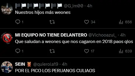 "Feliz día del niño", "Hijos toda la vida", fueron algunos de los mensajes de los fanáticos chilenos cuando vieron que su Selección saludaba a la FPF por su aniversario número 102, demostrando que a pesar de no admitirlo, la Selección de Chile tiene una gran rivalidad con la Selección Peruana, a la cual no pueden ni ver en pintura, un hecho que se sabía, solo que claro, en el país sureño siempre tratan de decir que su clásico es jugar con Argentina.