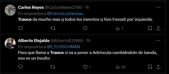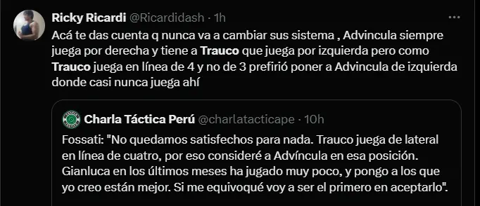 Otra posibilidad es que Fossati haya tenido en cuenta factores físicos o tácticos específicos para tomar esta decisión. Sin embargo, hasta el momento no se ha brindado una explicación oficial al respecto.