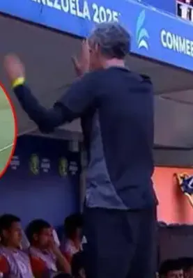 Tras el gol, la cámara se centró rápidamente en la reacción de Del Solar. El técnico, conocido por su templanza y análisis detallado del juego, no pudo evitar mostrar una profunda sorpresa y desconcierto al ver la jugada. Con las manos levantadas, como si estuviera buscando una explicación en el aire, se desplazó hacia el área donde habitualmente se ubica la delegación peruana. Su mirada era de asombro total, casi como si estuviera buscando entender cómo un error tan simple podía cambiar la dinámica del partido tan rápidamente.