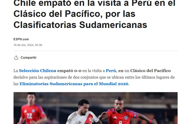 El empate a cero entre Chile y Perú en el Clásico del Pacífico ha generado un profundo malestar en el ambiente futbolístico chileno. Los medios de comunicación del país austral han coincidido en calificar el resultado como decepcionante y han descargado una lluvia de críticas sobre el desempeño de la selección.