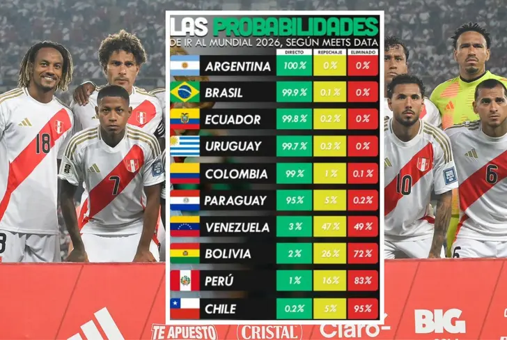 A medida que la Selección Peruana se prepara para enfrentar hoy a Venezuela en Maturín, las matemáticas juegan un papel crucial en el análisis de sus posibilidades de clasificación al Mundial de 2026. Con un panorama complicado y tras una serie de resultados no tan favorables, las probabilidades de que la Bicolor logre la clasificación directa o incluso el repechaje se ven reducidas. Según los últimos datos del portal 'Meets Data', las opciones de Perú son mínimas, pero aún existen. Sin embargo, ¿realmente puede la Bicolor aspirar a un boleto al próximo Mundial? Vamos a desglosar las posibilidades.