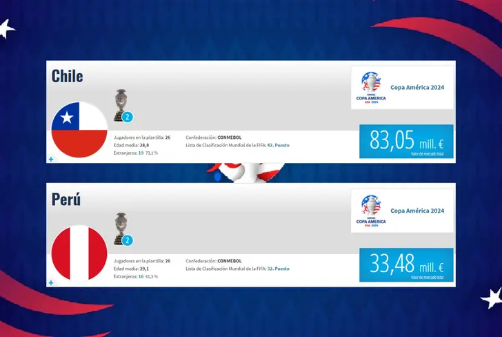 A tan solo pocas horas de que se dispute un nuevo Clásico del Pacífico en el marco de la Copa América que se realizará en los Estados Unidos, ya se vienen conociendo más o menos cómo alinearían Perú y Chile para tratar de empezar con el pie derecho el certamen continental. Ahora, si nos preguntamos a quién tiene mayor ventaja en el aspecto económico, es importante mencionar que la Roja cuesta €83,05 millones; mientras que la Bicolor tan solo vale €33,48 millones.